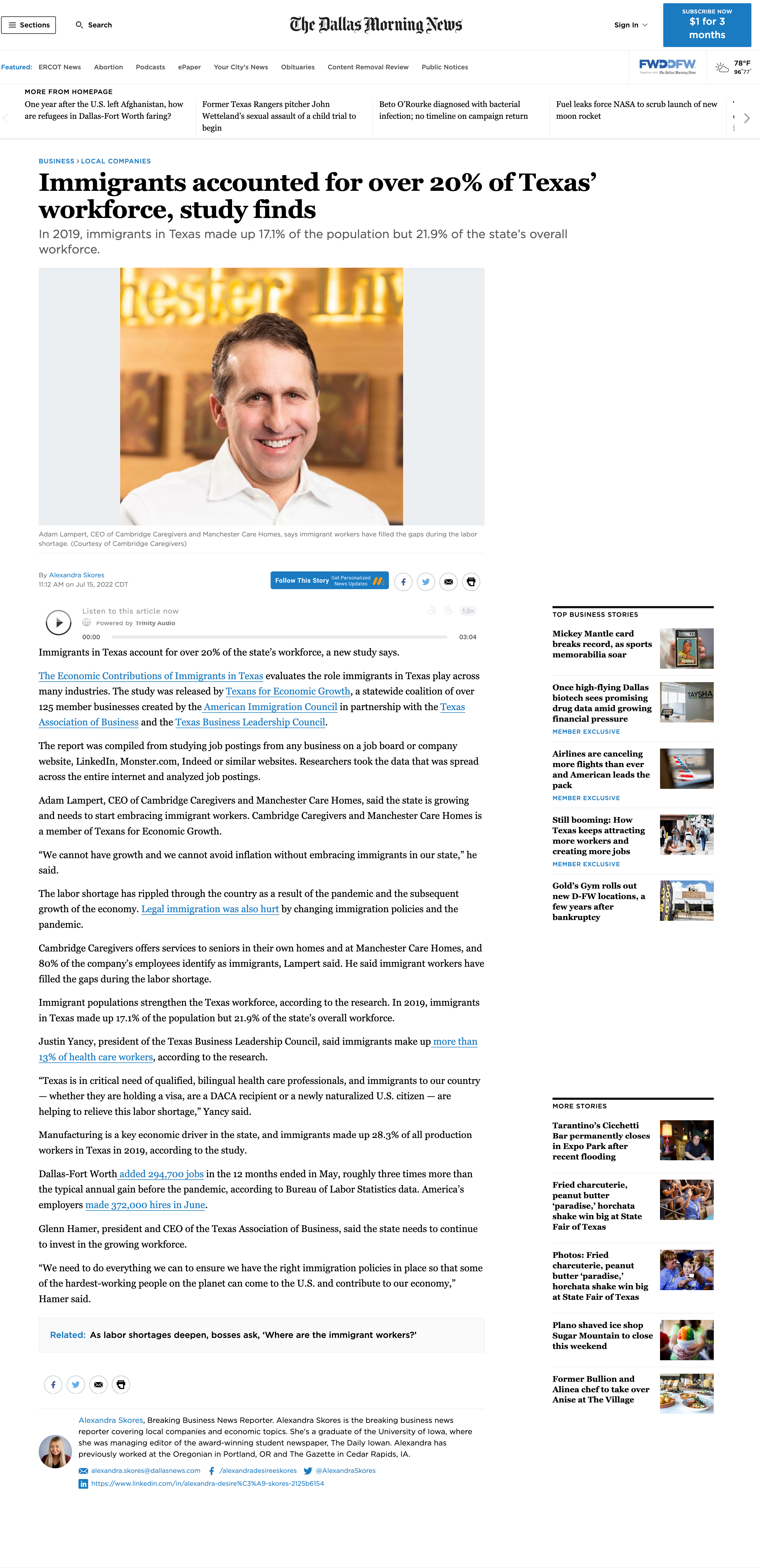 Manchester Care Homes in the Dallas Morning / Media / By Manchester Care Homes Immigrants accounted for over 20% of Texas’ workforce, study finds In 2019, immigrants in Texas made up 17.1% of the population but 21.9% of the state’s overall workforce. View Original Post